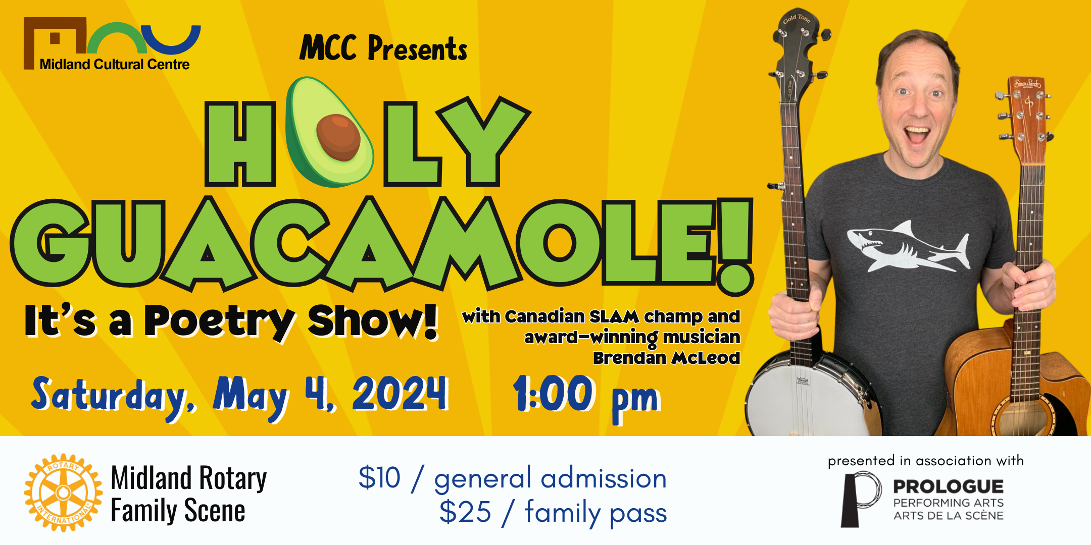Holy Guacamole, it’s a Poetry Show! is a kinetic feast of words and song for young kids! Written by former Canadian SLAM champ and award-winning musician Brendan McLeod, it offers kids the opportunity to revel in the thrill of word play while presenting practical lessons about rhythm and figurative language. Featuring a dinosaur rap, songs about planets and pets, hilarious haikus, and poems about everything from climate change to the lettuce in your lunch box, the show delivers content that’s...