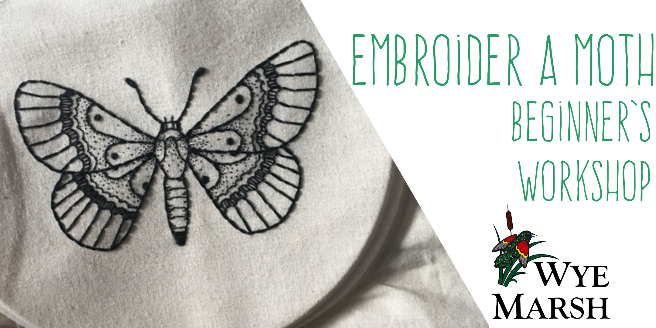 Advanced registration required using Eventbrite link at https://www.wyemarsh.com/embroider-a-moth-beginner-workshop