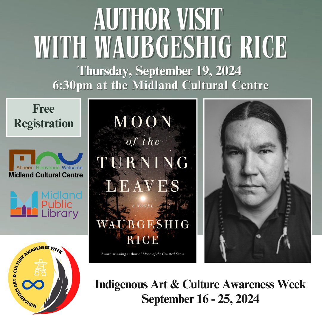 Midland Public Library is proud to partner with the Midland Cultural Centre to provide an author talk by Waubgeshig Rice, focused on his work and his books Moon of the Crusted Snow and Moon of the Turning Leaves. Moon of the Turning Leaves is the choice of this year’s Simcoe Reads Community Champion, Kevin...