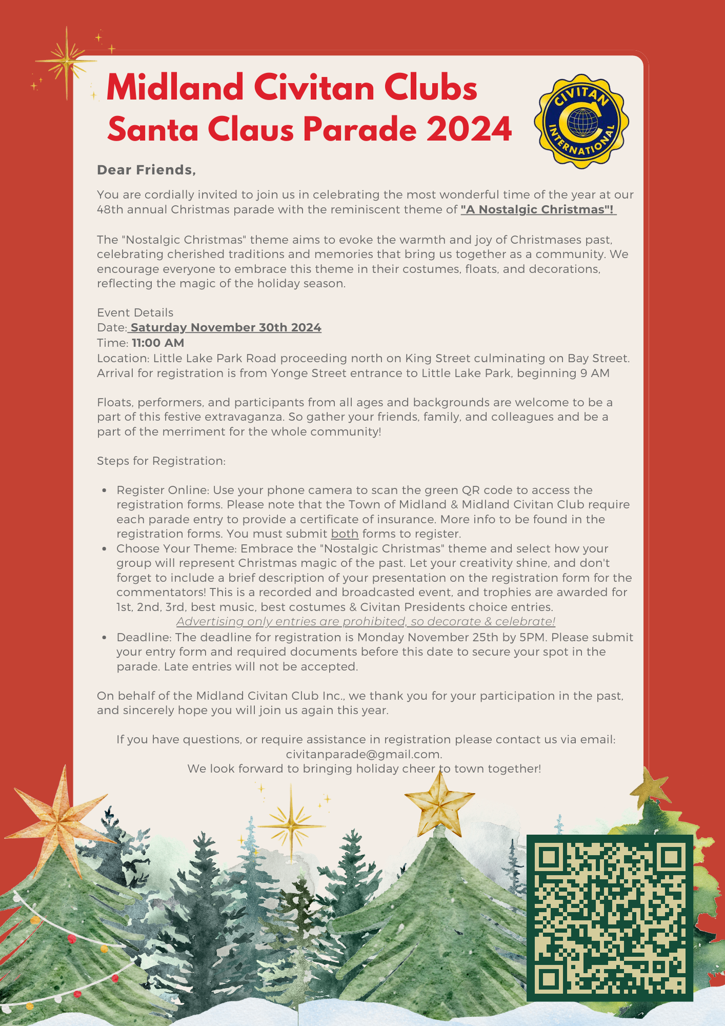 The Midland Civitan Club proudly presents the 48th Santa Claus Parade!!