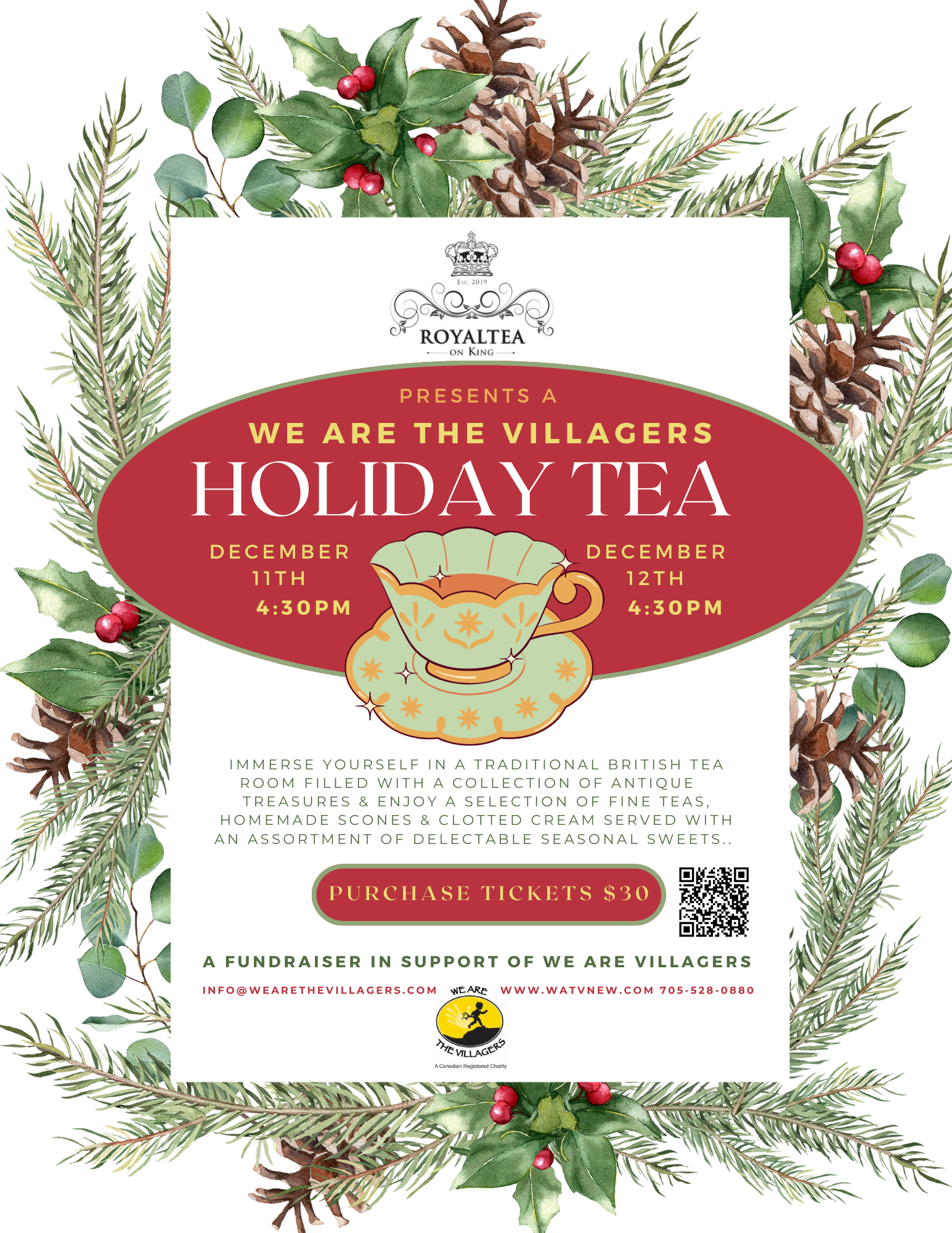 Join us for a festive Holiday Tea fundraiser for We Are The Villagers and immerse yourself in a traditional british tea room