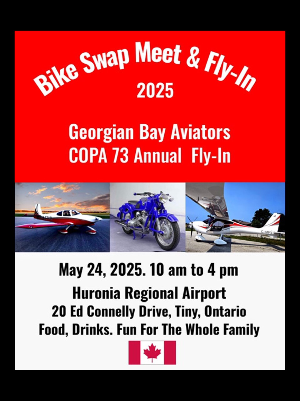 The Huronia Airport is hosting a Bike Swap Meet and Fly-In in partnership with the Georgian Bay Aviators and COPA 73.