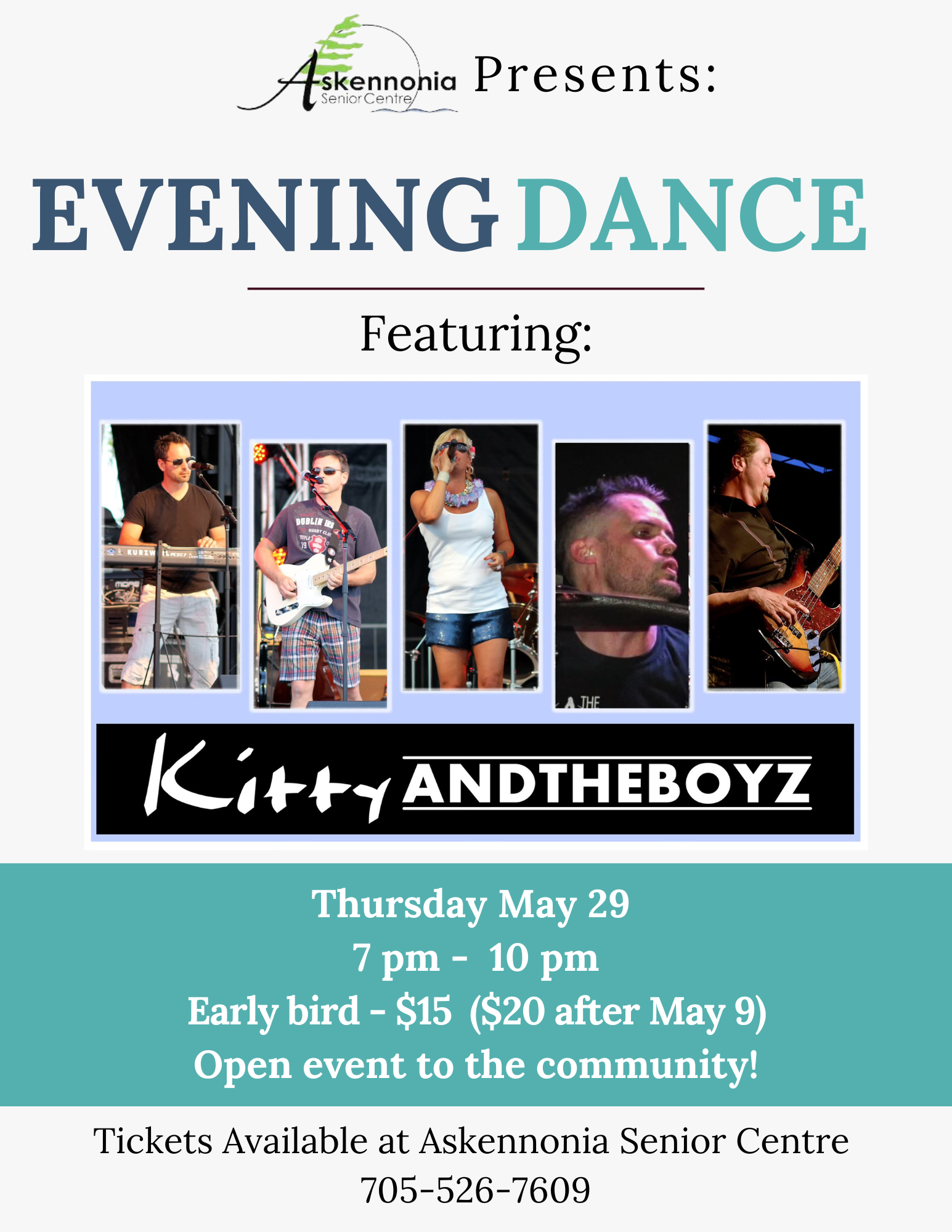Askennonia Presents: an Evening Dance with Kitty and the Boyz! Join us for a fun night of dancing on Thursday May 29th from 7-10. Early bird tickets are $15! After May 9th $20 Open to the community!